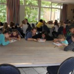 Nachmittags gab es dann HAKITAI, hier mussten sich die Kids in Pärchen zusammen finden und ein Wappen gestalten, dann ging es in die einzelnen Matches.  Es treten immer zwei Teams gegeneinander an und die Verlierer müssen sich den Gewinnern unterwerfen, ihr Wappen vernichten und um Aufnahme in die Gewinnergruppe flehen. Somit wächst die Teamgröße stetig und deren Anzahl schrumpft.