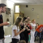 Abends kam es dann zu TUT ER`S ODER TUT ER`S NICHT. Hier wurden die einzelnen Gruppen und jeweils ein Freiwilliger aus der Gruppe, getrennt voneinander befragt, ob sie eine Aufgabe erfüllen wollen oder eben nicht. Hat die Gruppe getippt, dass ihr Freiwilliger es tut und er es auch tat, gab es am meisten Punkte zu holen. Die Aufgaben waren schon ein paar kleine Herausforderungen, wie z.B. ein Lied vor allen singen, ein rohes Ei auf dem Kopf zerschlagen, Honig in die Haare schmieren, eine Zwiebel essen, einen Becher Slush-Eis exen (Hirnfrost inkl.), die Finger lackieren lassen, mit Edding bemalen lassen, mit Ketchup ein Gesichts-peeling machen usw.