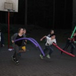 Nach einer kurzen Erholungspause gab es am Abend ein weiteres Highlight: das Juggern! Bei diesem Spiel treten zwei Mannschaften gegeneinander an und „bekämpfen“ sich mit verschiedenen „Waffen“ aus Poolnudeln, „unbewaffnet“ ist alleine der Läufer jedes Teams, dessen Aufgabe es ist, den Jugg über die Ziellinie zu bringen.