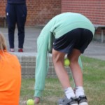 Es galt in einer Minute verschiedenste Aufgaben zu erfüllen: Becherumstapeln, Pfannewenderkatapult, Wattebäusche mit der Nase transportieren, Lockenwickler mit den Augen usw…