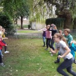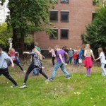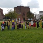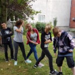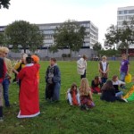 Nachdem wir uns ein wenig eingerichtet hatten gingen wir nach draußen um ein wenig zu spielen (Contacto, Eisschollenspiel…). Anschließend verkleideten wir uns und liefen Richtung Innenhafen, um auch dort einige Spiele auf der großen Wiese zu spielen. Warum wir uns verkleidet haben? Das ist eine gute Frage… 😉