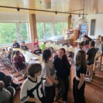 Es gab folgende Workshops: Sushi, Pizza backen, Schwalben bauen, DJ-ing, Origami, perspektivisches Zeichnen, Keramik bemalen, Fußball und Lagerfahne malen.