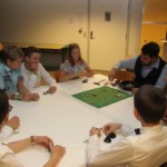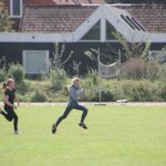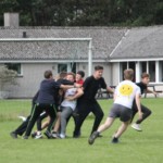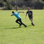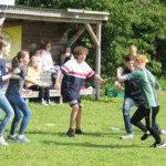 Am Vormittag haben wir DOPPELTES E ZERLATSCHEN gespielt, wo es darum geht, ein aus Stöcken gelegtes doppeltes E zu legen und anschließend zu zerlatschen. Die Fänger versuchen das E zu schützen und die Angreifer es zu zerlatschen. Hierbei wurde das E sehr häufig und sehr schnell zerlatscht. Anschließend spielten wir noch eine Runde BRITISH BULLDOG 123.