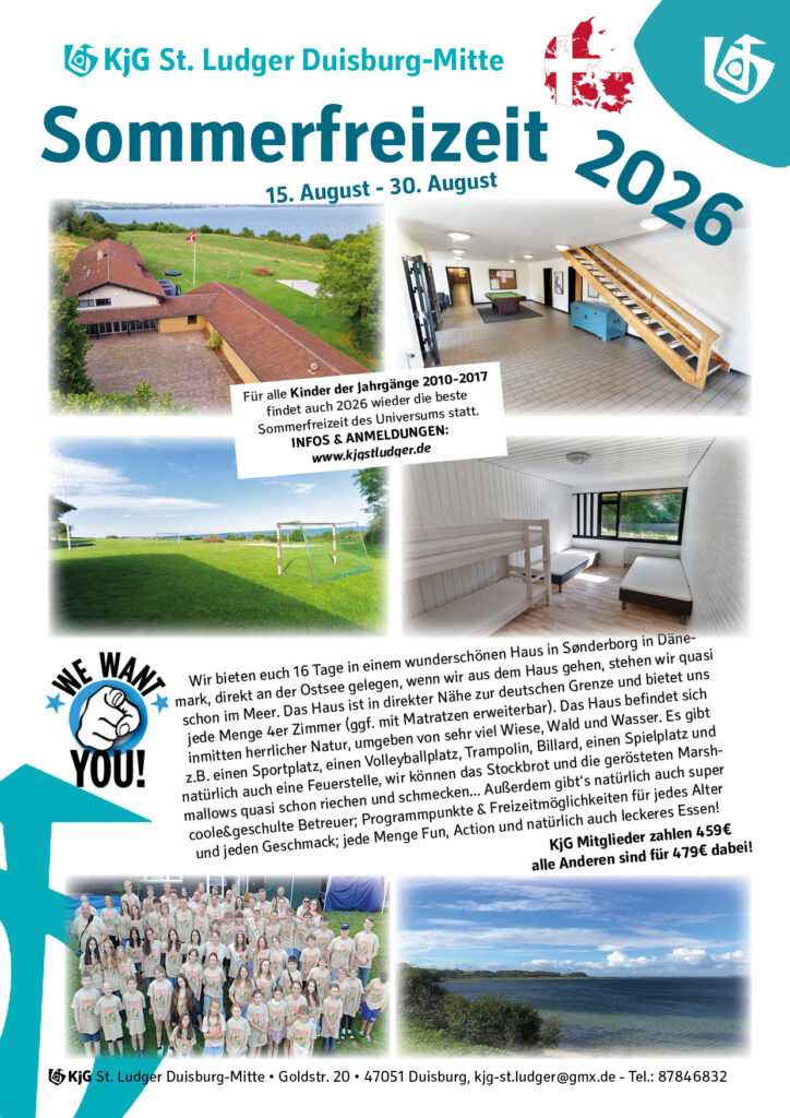 kjg-st.ludger(ät)gmx.de schicken. Wer zuerst kommt, mahlt zuerst. Also auf jeden Fall auch 2026 wieder dabei sein, denn es wird die beste Sommerfreizeit aller Zeiten!